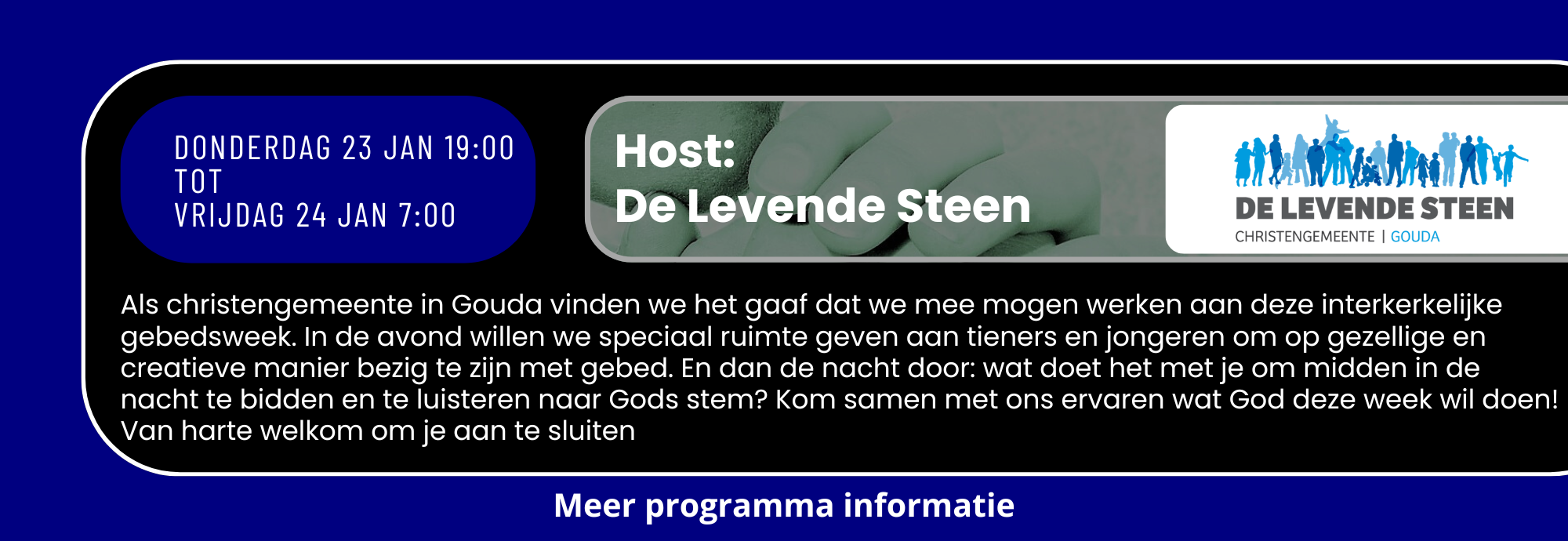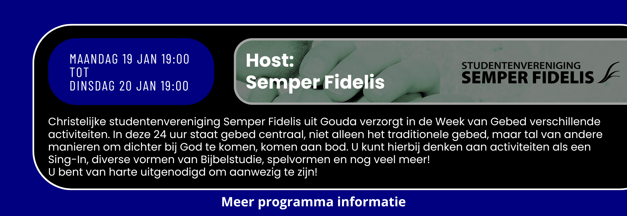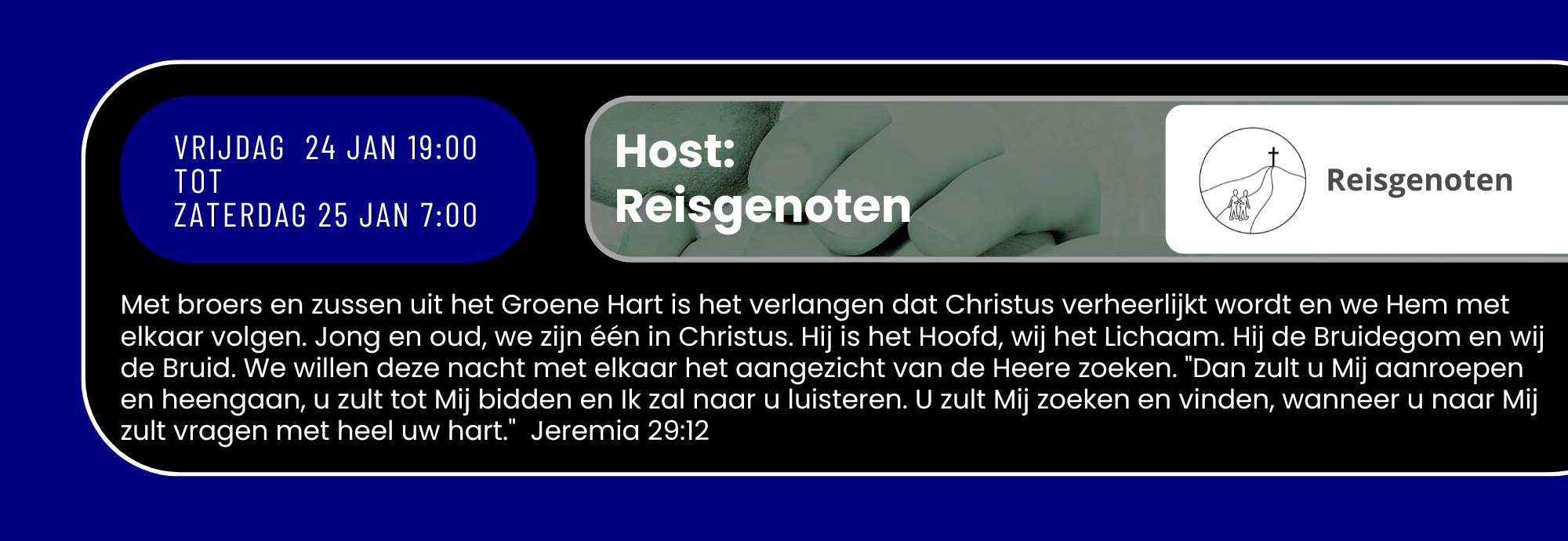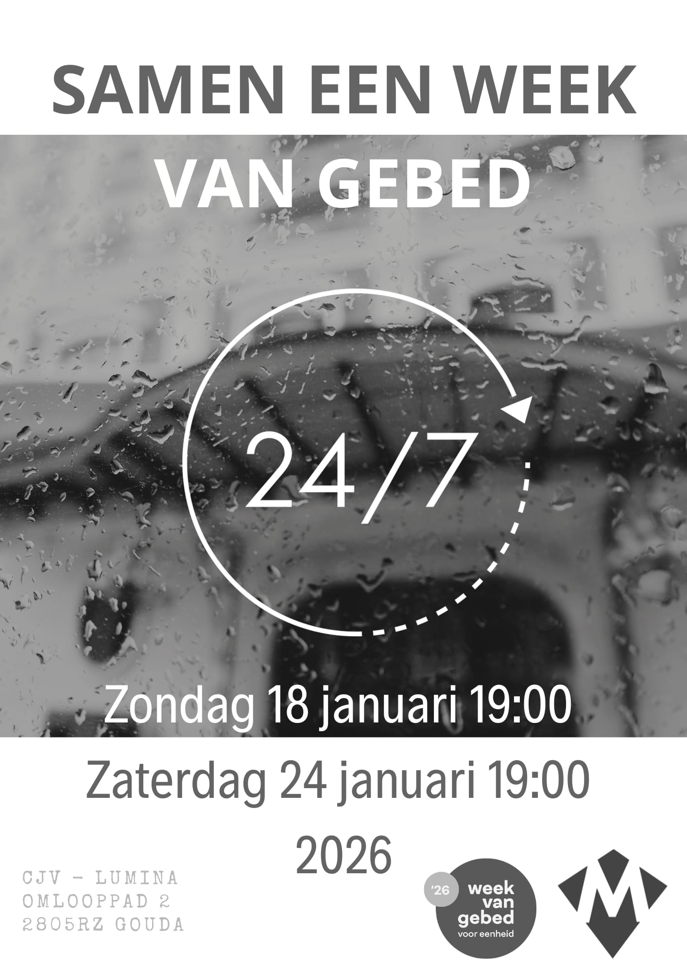 Zondag 18 januari 19:00 tot Zaterdag 24 januari 19:00 Bidden we 24uur per dag samen